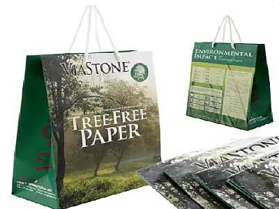 台湾の「台湾龍盟科技股有限公司(ロンミン社)」が開発した石灰石(CaCO3:最大80%)とHDPE(高密度ポリエチレン)を主原料にしている、紙や合成紙の機能を持った新素材です。日本における総輸入元は姫路の釜谷紙業様。代理店はシオザワ様。